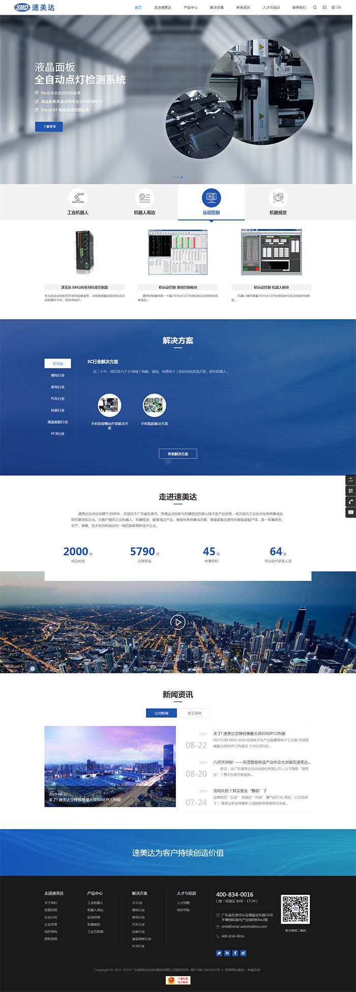 廣東速美達(dá)自動(dòng)化股份有限公司(以下簡(jiǎn)稱(chēng)“速美達(dá)”)創(chuàng)建于2004年,總部位于廣東省東莞市。憑借運(yùn)動(dòng)控制與機(jī)器視覺(jué)的核心技術(shù)及產(chǎn)品優(yōu)勢(shì),成為國(guó)內(nèi)工業(yè)自動(dòng)化系統(tǒng)集成應(yīng)用方案商。為客戶(hù)提供工業(yè)機(jī)器人、機(jī)器視覺(jué)、配套周邊產(chǎn)品的智能化系統(tǒng)集成方案、智能裝備及柔性化智能裝配產(chǎn)線,是一家集研發(fā)、生產(chǎn)、銷(xiāo)售、技術(shù)支持和培訓(xùn)為一體的國(guó)家高新技術(shù)企業(yè)。