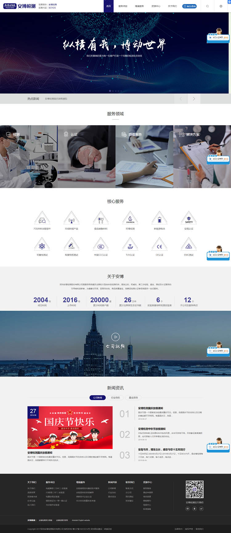 非常感謝深圳安博檢測(cè)股份有限公司對(duì)卓越邁創(chuàng)的工作支持,貴司網(wǎng)站建設(shè)項(xiàng)目由深圳網(wǎng)站建設(shè)公司卓越邁創(chuàng)完成并已成功上線。